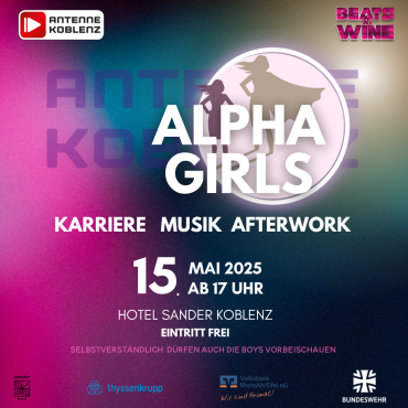 Liebe Power-Frauen, Studentinnen, Ladies und Sympathisanten, wir laden euch herzlich zu Alphagirls ein – dem ultimativen Frauen-Power-Afterwork-Event in Koblenz! Erlebt am 15. Mai 2025 ab 17 Uhr einen Nachmittag und Abend voller Inspiration, Austausch und Empowerment – von Frauen für Frauen. Nach spannenden Talks lassen wir den Abend mit Party, guter Musik und bester Laune ausklingen! Das erwartet euch: Inspirierende Speakerinnen – echte Geschichten von echten Power-Frauen, zum Beispiel Myla Blumenkamp, Astrid Fries & co. Lifestyle & Kunst – kreative Impulse, die […]