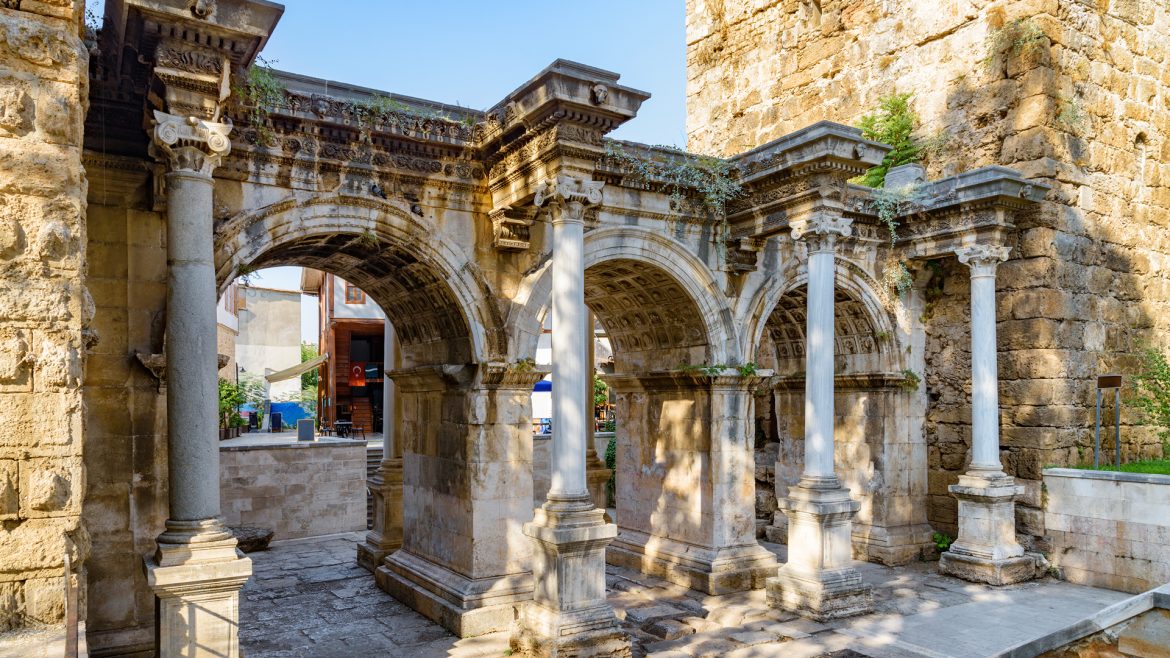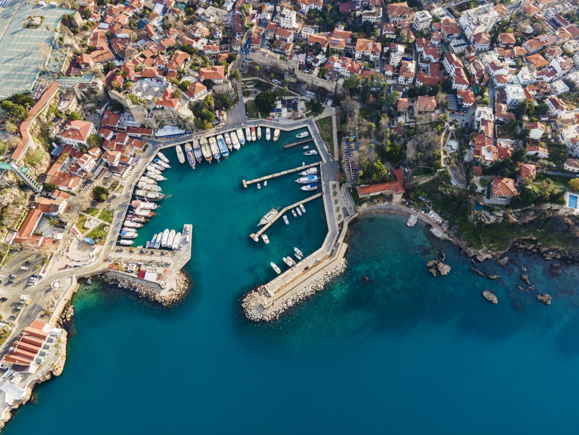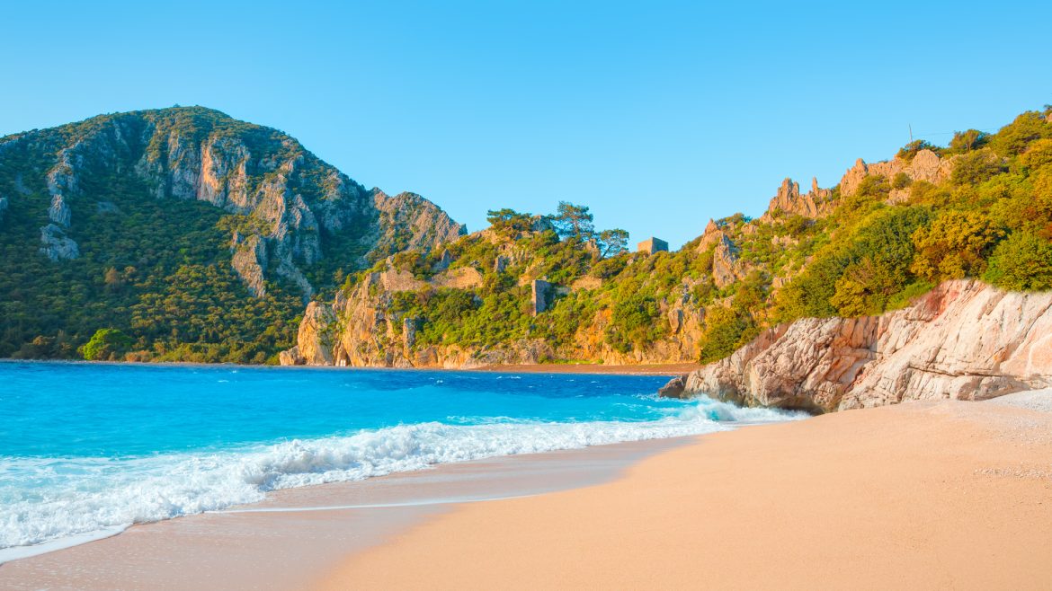 An der Türkischen Riviera liegen beliebte Küstenstädte wie Antalya, Side und Alanya mit goldenen Sandstränden, türkisfarbenem Wasser und einer reichen Geschichte.
